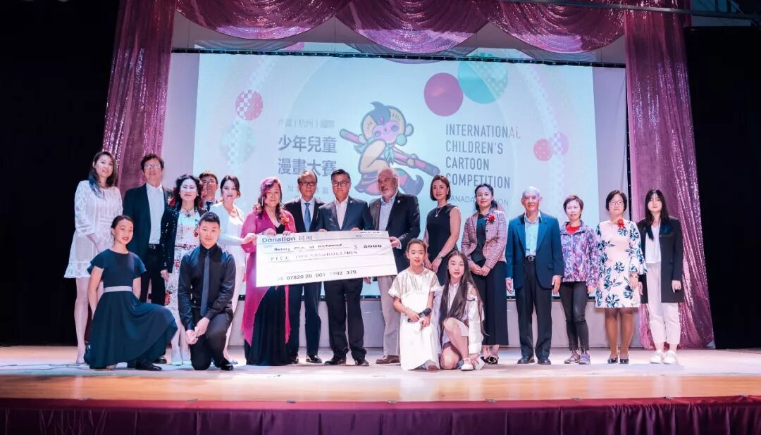 初夏午后,数百位年轻小艺术家聚集在温哥华大中华文化中心,展现他们最美丽温暖的一颗心!加拿大共约900名小艺术家们,参与2019年中国国际少年儿童漫画大赛,与全球4万多件作品比美,成绩斐然,总计荣获1个特等奖丶24个金奖丶47个银奖丶64个铜奖丶59个优秀奖。主办方为得奖的小艺术家举行隆重颁奖和展览典礼。本次活动结合公益行善,近百位小艺术家捐出画作义卖,所得共5,000元,资助扶轮社和比尔盖兹基金会致力的「根除小儿麻痹症」项目。