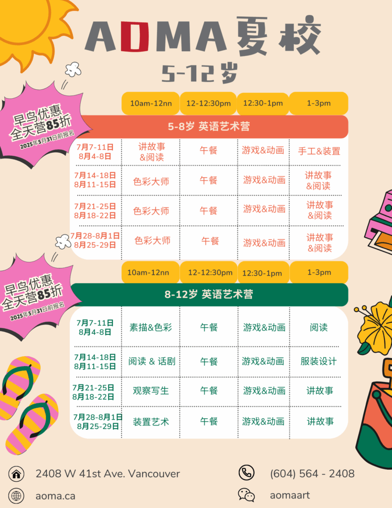 AOMA 夏校再次启航,带来为期 8周 的创意艺术夏令营!丰富多彩的课程内容,激发孩子的想象力与艺术潜能。在安全有趣的环境中,他们将通过不同主题探索艺术的无限可能。